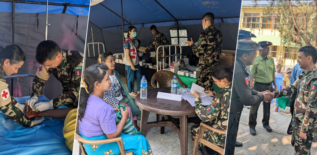 अहिले म्यानमारको स्वास्थ्य प्रणाली कुन परिस्थितिबाट गुज्रिरहेको छ भन्ने थाहा पाउन नेपाली सेनाको स्वास्थ्य टिमले त्यहाँ कसरी काम गर्यो भन्ने हेरे पनि पुग्छ । मन्त्रिपरिषद्को निर्णय बमोजिम भूकम्पपीडितको उपचारका लागि २० चैतमा प्रमुख सेनानी रामचन्द्र श्रेष्ठ नेतृत्वको २२ सदस्यीय नेपाली टोली म्यानमार पुगेको थियो ।